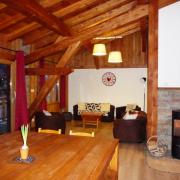 Pièce à vivre avec le poêle à bois (bois fourni), luminosité et hauteur sous plafond avec charpente en mélèze apparente