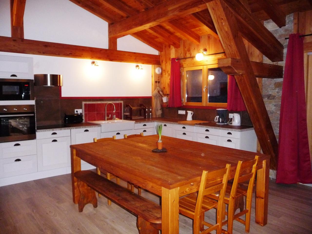 Cuisine toute équipée, avec grand plan de travail et table à manger pouvant accueillir 15 personnes